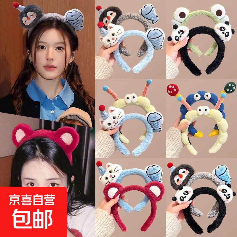 卡通毛绒发箍女2025新款秋冬洗脸专用头箍高颅顶防滑压发发卡发饰 随机2个装