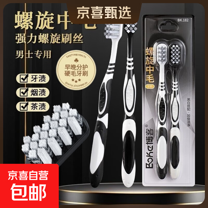 【已售百万】山姆同款宽头凸面软毛高密牙刷组合成人深层清洁家庭 【男士必备】去渍硬毛牙刷 4支