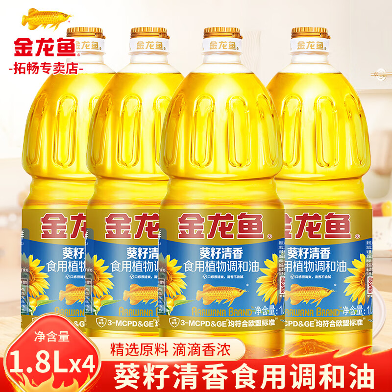 金龙鱼葵花籽清香型食用植物调和油1.8L炒菜烹饪食用油烘焙烧烤批发粮油 1.8L*4桶