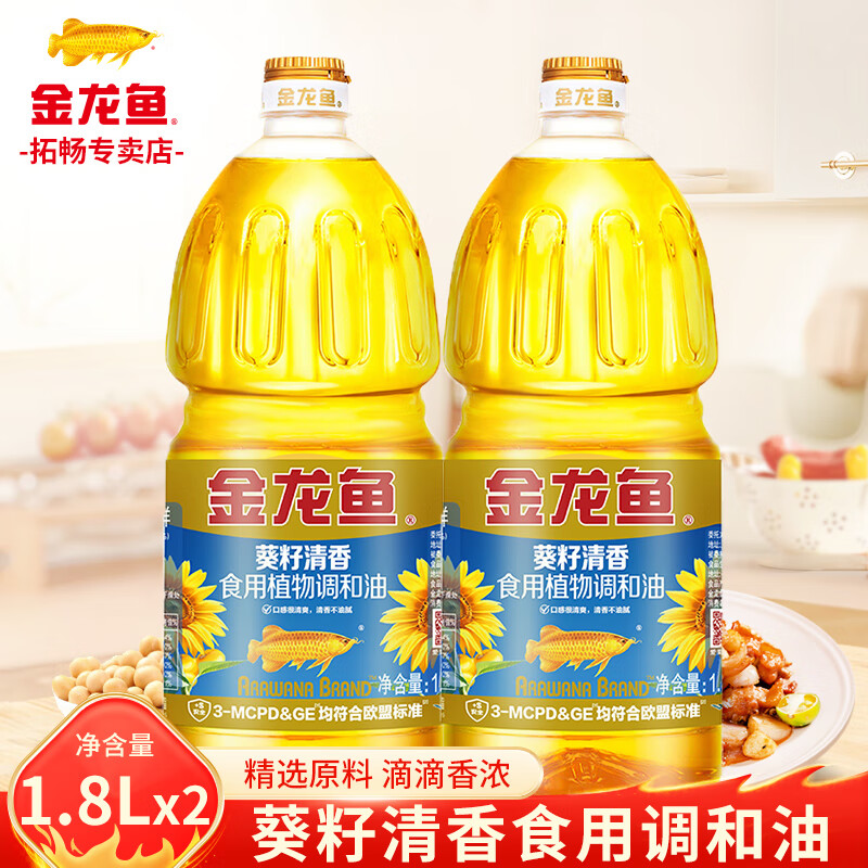 金龙鱼葵花籽清香型食用植物调和油1.8L炒菜烹饪食用油烘焙烧烤批发粮油 1.8L*2桶 【人气推荐】