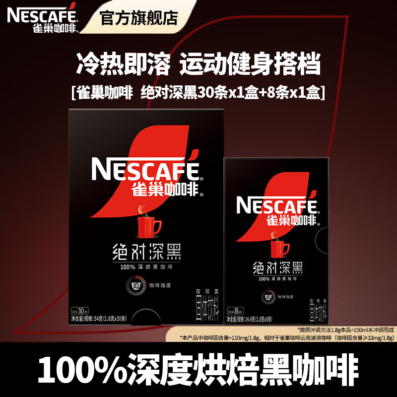雀巢(Nestle)咖啡醇品深黑燃魂美式无糖低脂速溶纯黑咖啡粉办公健身 绝对深黑30条*1盒+同款8条