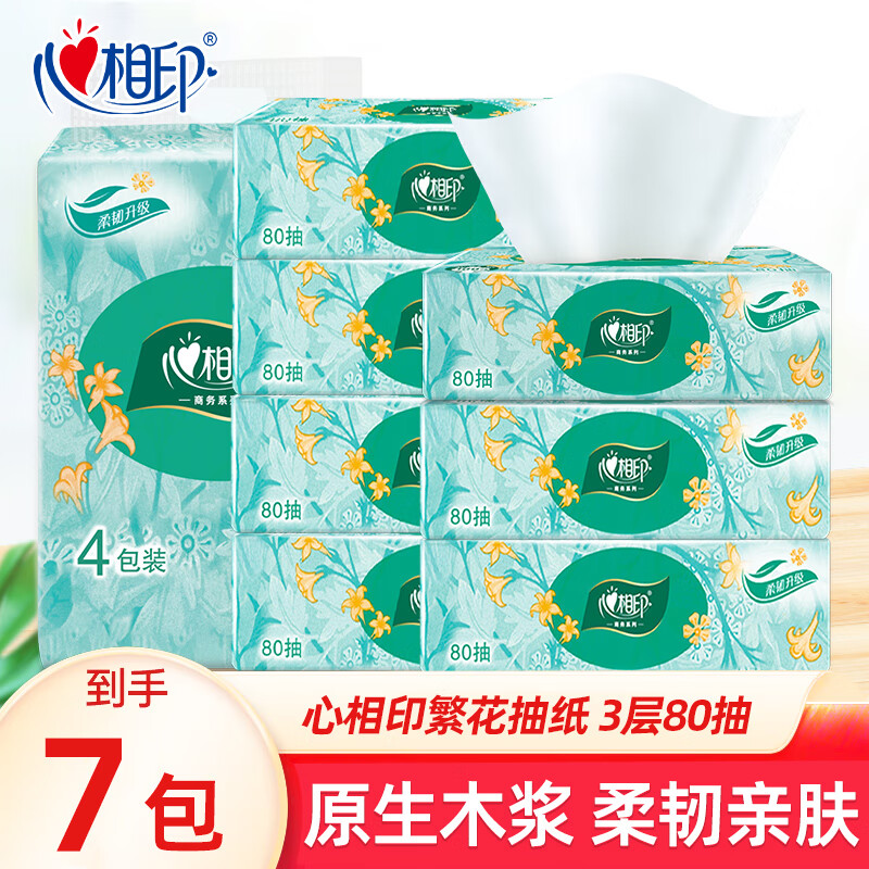 心相印抽纸繁花系列家用实惠装超市同款擦手纸巾餐巾纸厚实亲肤 3层 80抽*7包