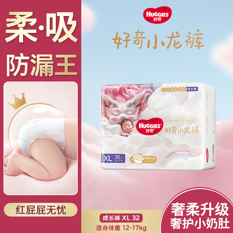 好奇(Huggies)皇家御裤婴儿拉拉裤婴儿成长裤超薄透气 XL32片(12-17kg)