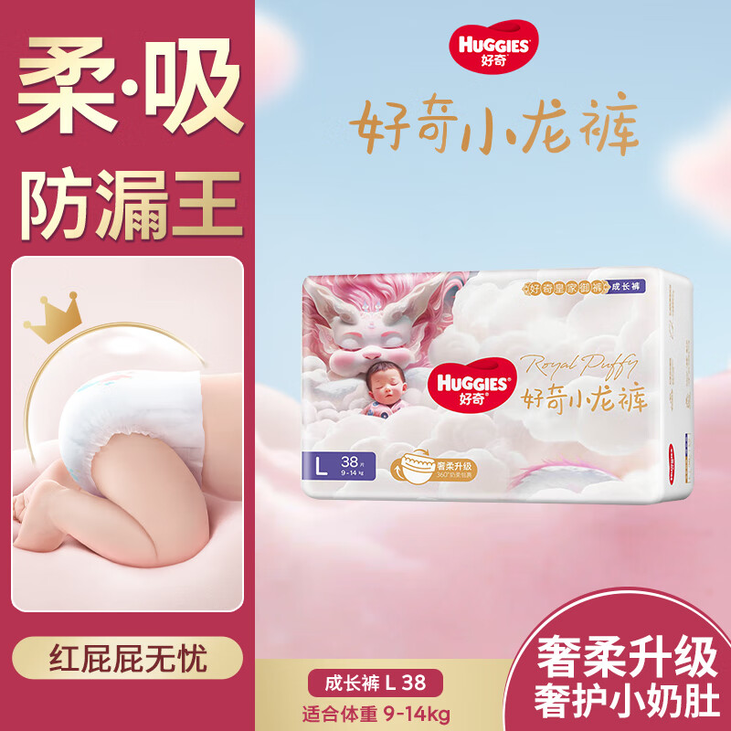 好奇(Huggies)皇家御裤婴儿拉拉裤婴儿成长裤超薄透气 L38片(9-14kg)