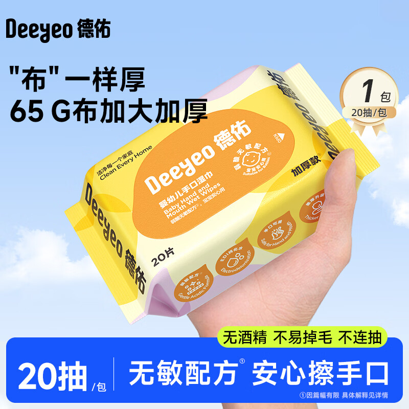 德佑湿巾保湿擦脸巾出行便携卸妆洁面巾柔软亲肤不掉絮化妆湿巾 厚款 20抽 1包【出行体验装】