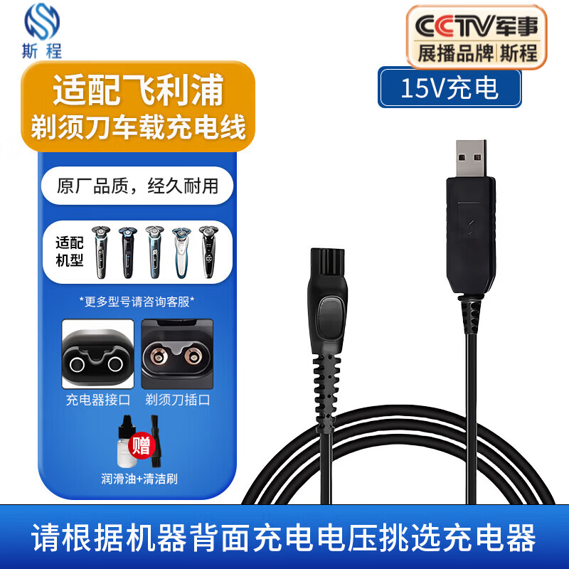 斯程 适配飞利浦剃须刀充电器series3000500070009000/PT/AT系列刮胡刀快充电源线15V原装平替充电线 【15V充电器】HQ8505车载充电器