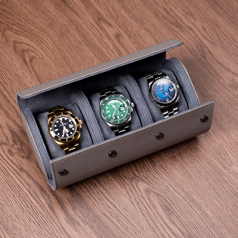 TOBEAR手表收纳盒便携表盒 防尘防摔机械表盒多功能旅行随身表袋包男女 灰色3位