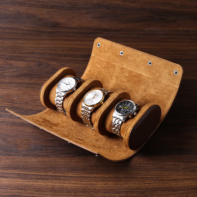 TOBEAR手表收纳盒便携表盒 防尘防摔机械表盒多功能旅行随身表袋包男女 棕色3位
