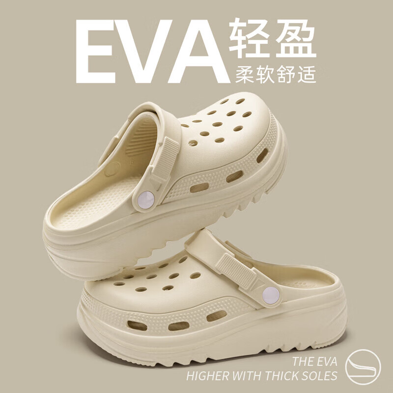 EVA男女洞洞鞋外穿厚底踩屎感软底透气包头凉鞋 沙色 40-41 【适合39-40】