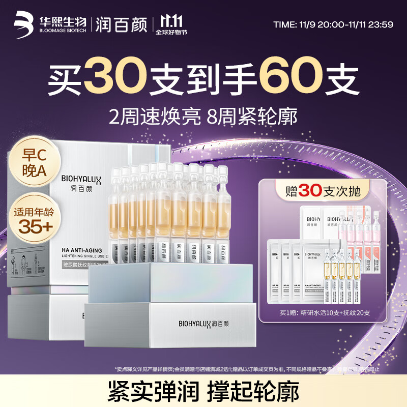 润百颜华熙生物HACE抚纹次抛精华30支早C晚A抗皱淡纹护肤品生日礼物女