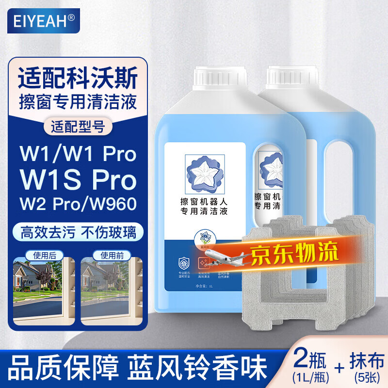 EIYEAH适配科沃斯窗宝机器人 清洁液 清洗剂 清洁剂 窗宝清洗液2瓶/W1/W2/W960抹布5个