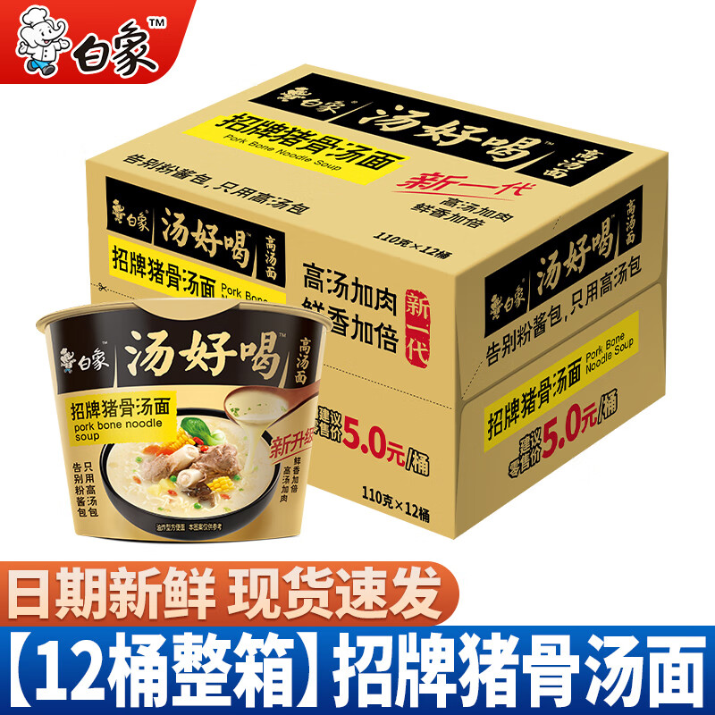 白象方便面汤好喝桶面桶装整箱7口味混搭速食泡面批发免煮速食 【12桶整箱】招牌猪骨