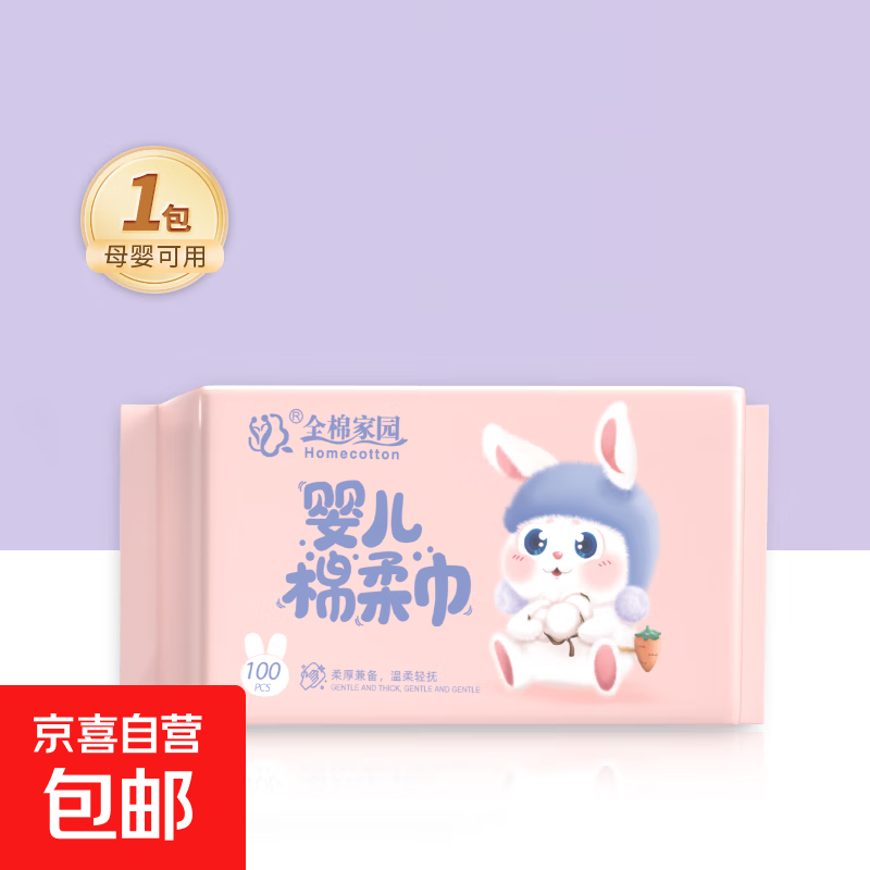 【100%植物源纤维】一次性婴儿洗脸巾平纹柔软亲肤洗脸巾干湿两用 婴儿洗脸巾100抽1包