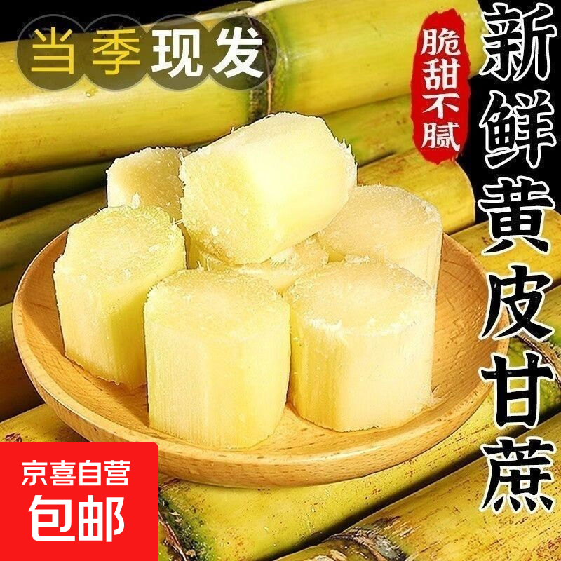 广西黄金甘蔗当季黄皮甘蔗水果脆清甜多汁爽口可榨汁易撕产地直发 黄皮甘蔗带箱2斤【解馋】