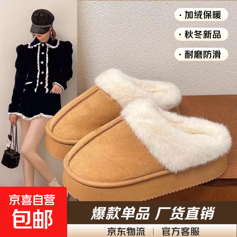 2025新款棉拖鞋女士秋冬季家居室内加绒保暖可爱少女心棉鞋外穿3 8803厚底3CM-黄色 38 -39适合37-38