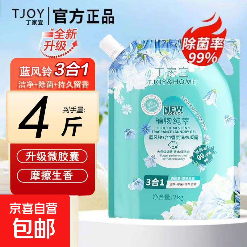 正品丁家宜蓝风铃洗衣液2kg除菌深层洁净柔软护衣(活动专享) 洁净除菌2kg*1袋