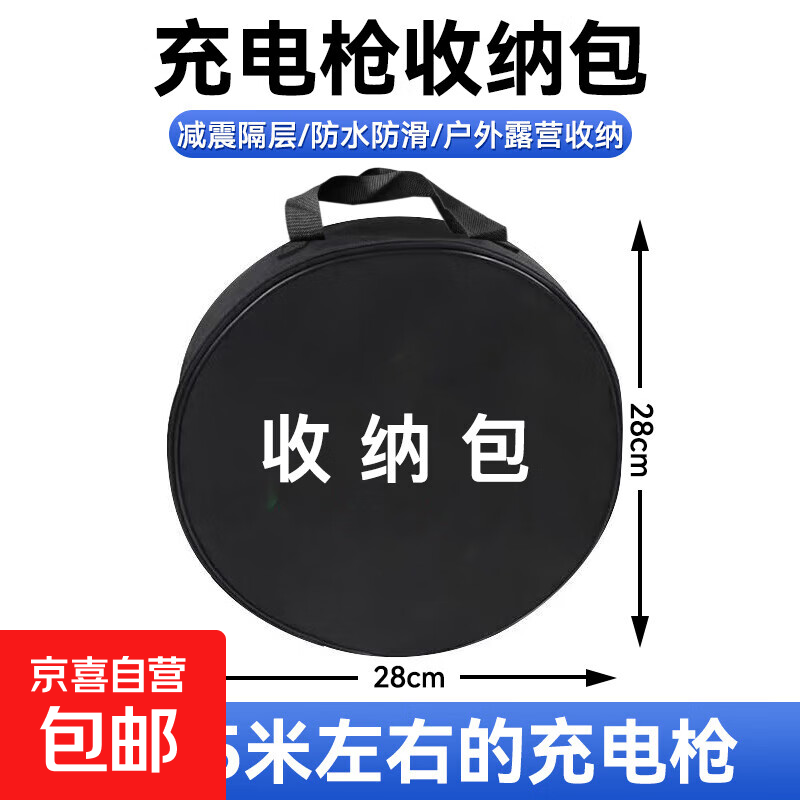 便携收纳包 充电枪收纳包 数码收纳包洗漱包 野营出行露营杂物收纳包 便携车载收纳包 圆形收纳包28cm 升级加厚牛津布