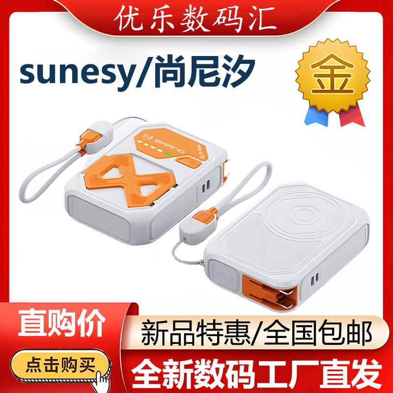 sunesy手机磁吸无线电源充电宝1万毫安 全新 PD3.0超级快充多功能户外旅行便携式双向无线电源 白色 20000mAh(快充)