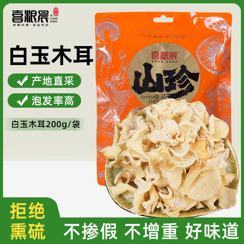 豆产木耳黑木耳干货特级白木耳干木耳白玉木耳菌菇凉拌炒菜火锅食材 白木耳200克 3袋【干净无杂】