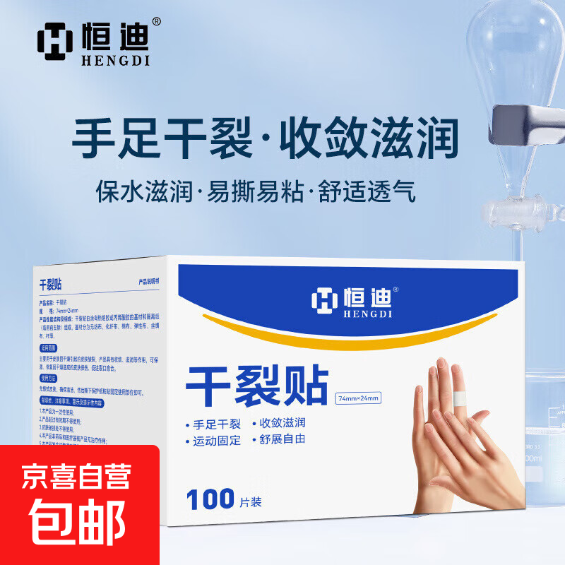 恒迪手足干裂贴皮肤皲裂高粘性贴布脚后跟开裂棉布贴耐磨皲裂手足 干裂贴100片1盒