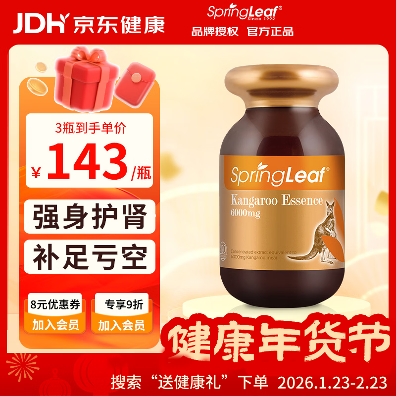 绿芙(Spring leaf)澳洲进口 袋鼠精胶囊 男士雄风活力护肝补肾熬夜玛卡奶蓟草 红袋鼠精 120粒*1瓶