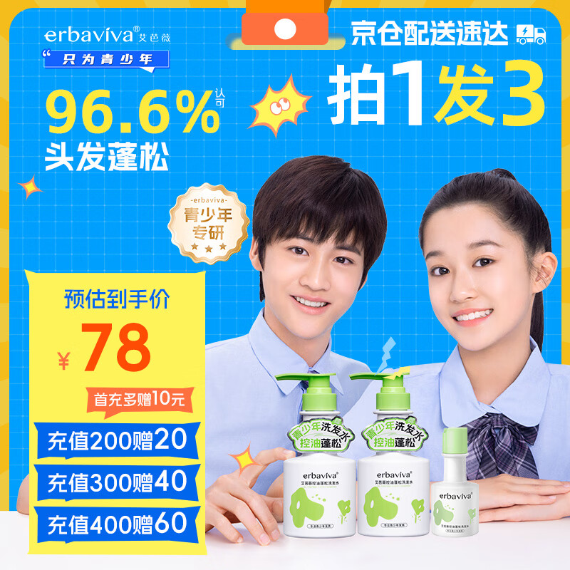 艾芭薇青少年洗发水套装700ml 控油蓬松运动后清洁学生12-15推荐