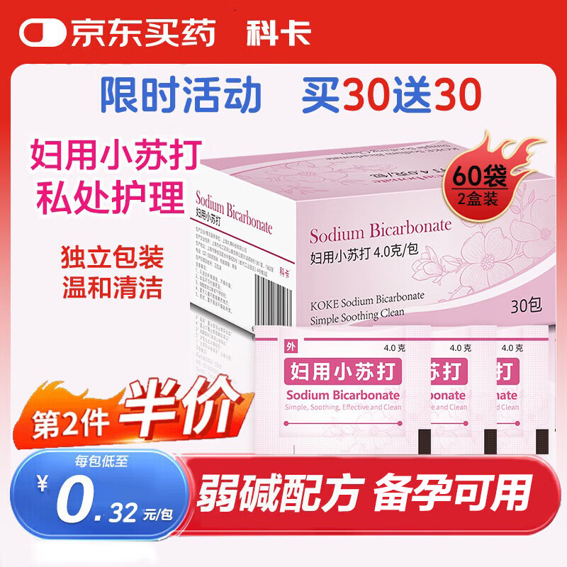科卡 妇用小苏打粉阴道冲洗器女性私处护理碳酸氢钠弱碱性清洗液 【60包】买30送30