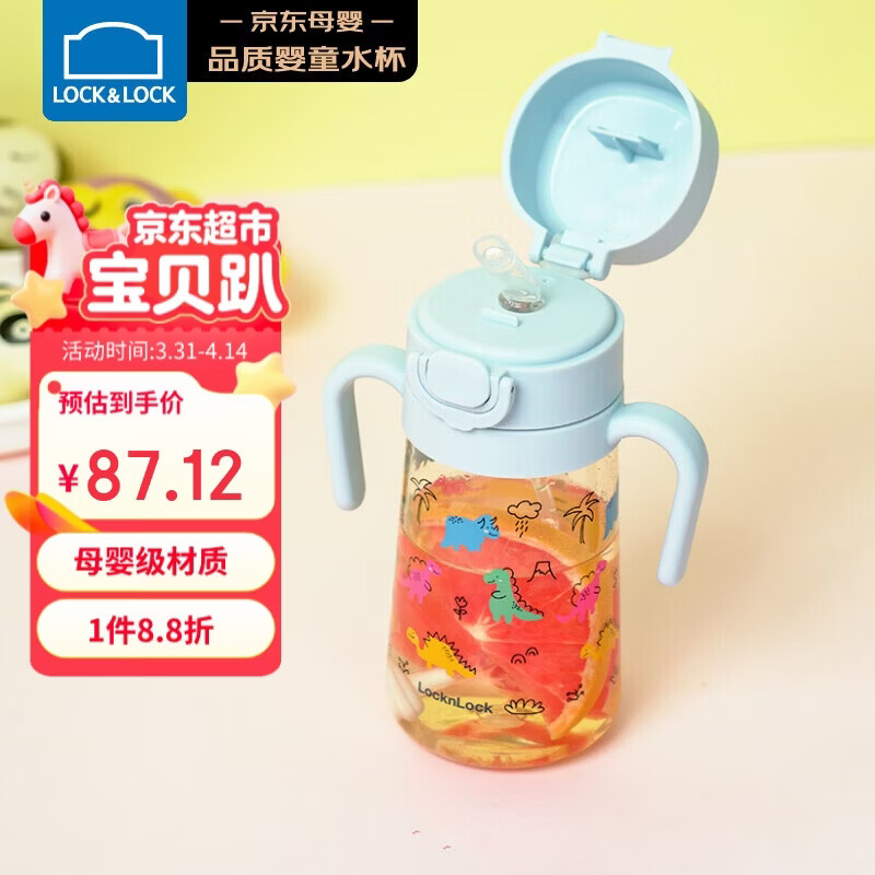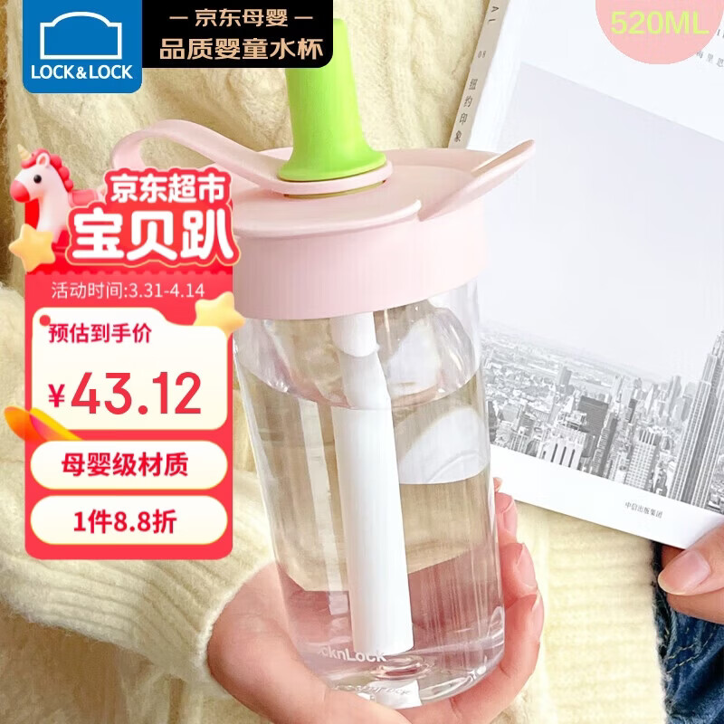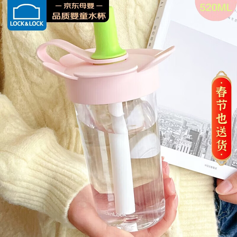 乐扣乐扣(LOCK&LOCK)儿童吸管水杯tritan材质学生户外便携手拎果汁奶茶杯子520ml粉色