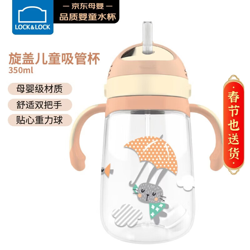 乐扣乐扣(LOCK&LOCK)儿童吸管水杯带手柄背带婴儿学饮宝宝幼儿园水壶小兔子350ML橙色