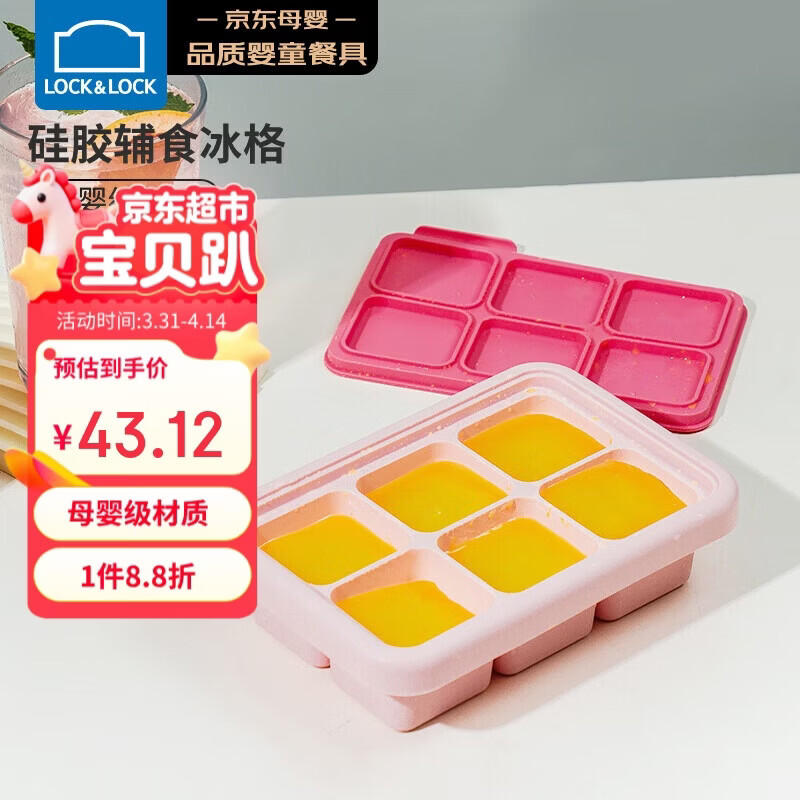 乐扣乐扣(LOCK&LOCK)硅胶辅食冰格 婴儿辅食冷冻分装储存儿童宝宝蒸糕模具 粉色