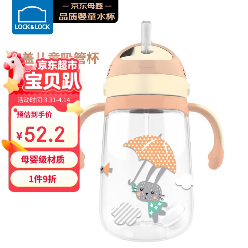 乐扣乐扣(LOCK&LOCK)儿童吸管水杯带手柄背带婴儿学饮宝宝幼儿园水壶小兔子350ML橙色