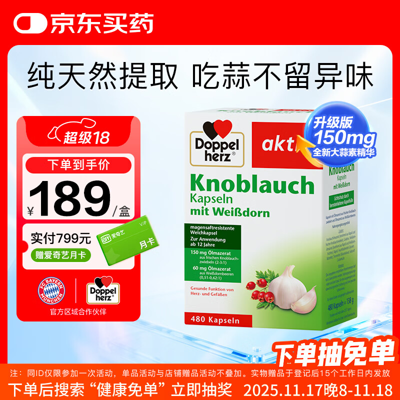 双心(Doppel herz)大蒜素山楂精油480粒吃蒜无异味成人含量升级