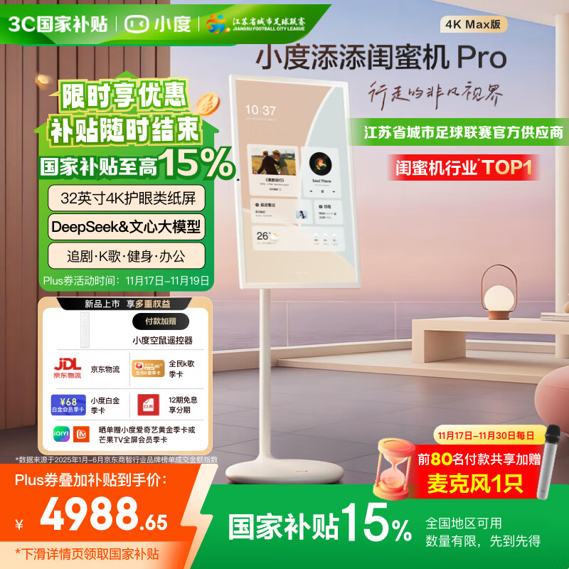 添添闺蜜机Pro4K Max版(8+256GB) 小度移动平板电视 显示器音响 长续航追剧健身随心屏 礼物