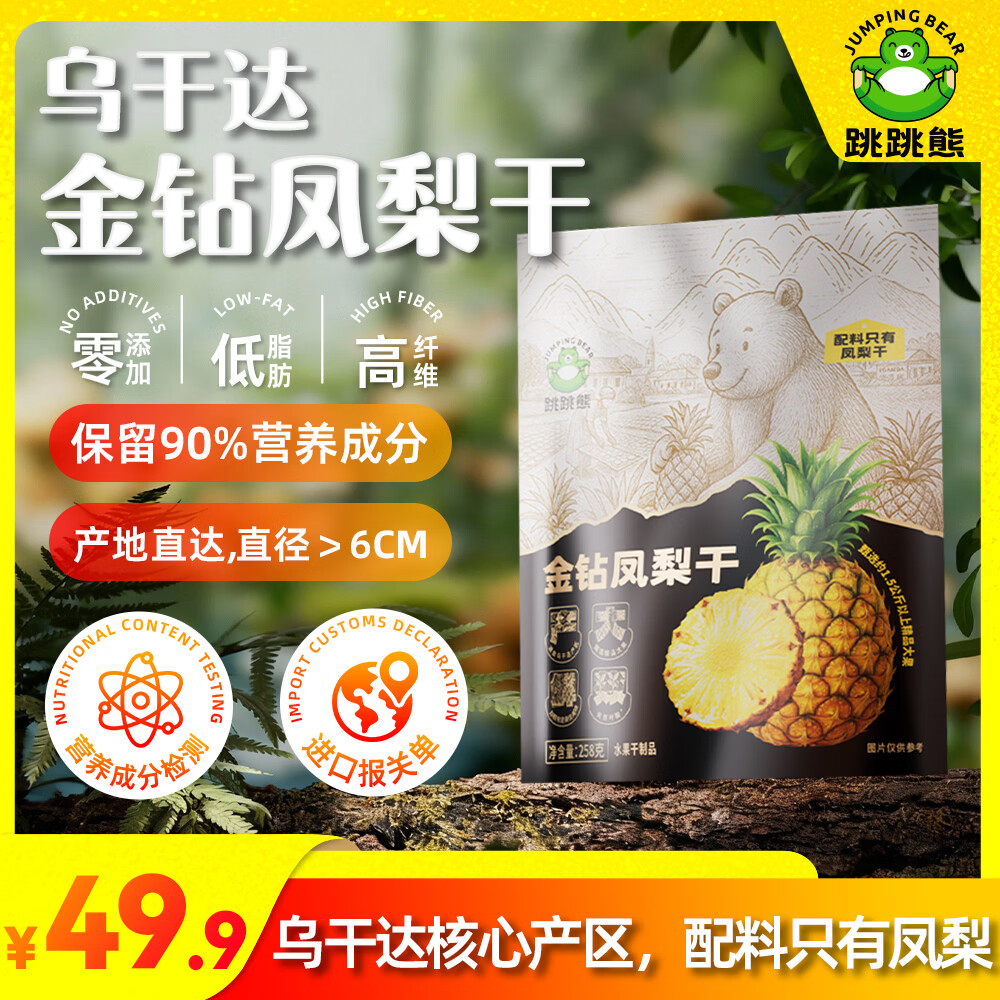 跳跳熊无添加乌干达金钻凤梨干258g菠萝干蜜饯果干叶酸孕妇独立包装