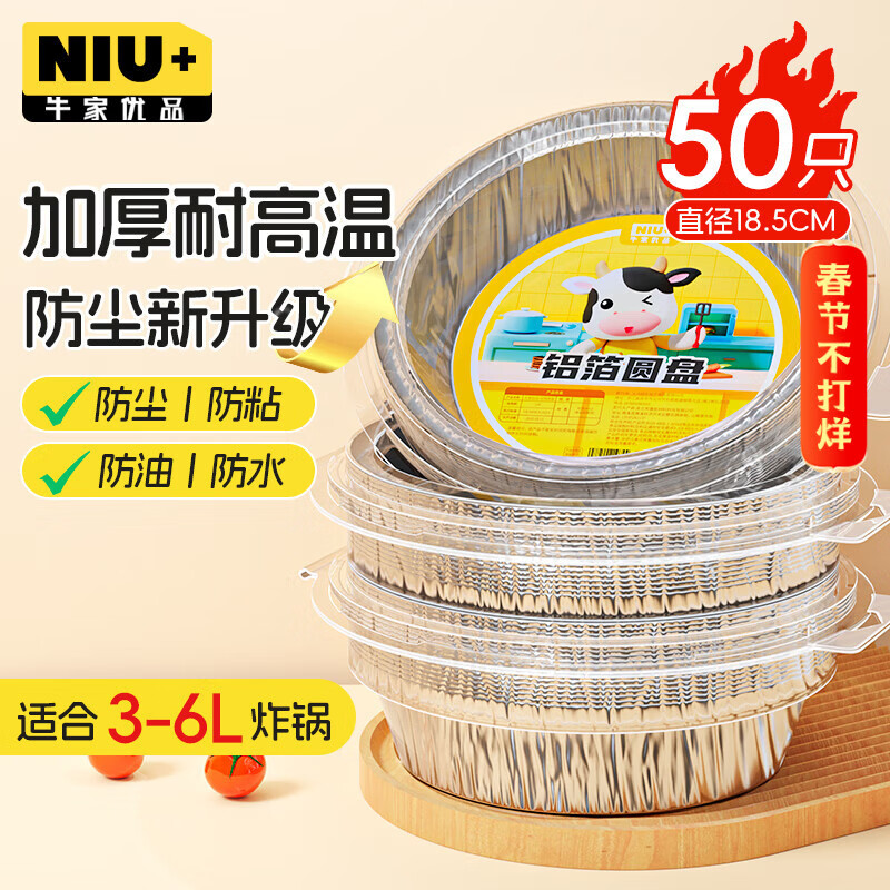 牛家优品 空气炸锅锡纸盘50只*18.5cm加厚食品级烧烤空气炸锅专用纸碗铝箔