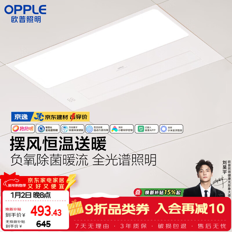 欧普照明(OPPLE)京东集采JC系列智能浴霸S3 国家补贴抱抱暖变频智能除菌浴霸 京逸