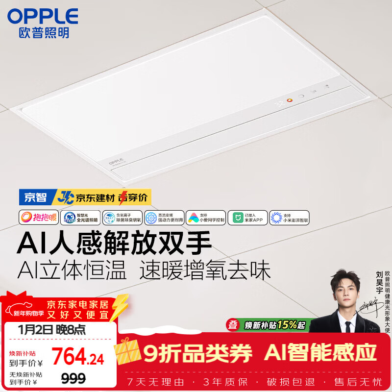 欧普照明(OPPLE)AI智能人感浴霸集采JC系列S5风暖抱抱暖变频适老除菌除臭一体京智