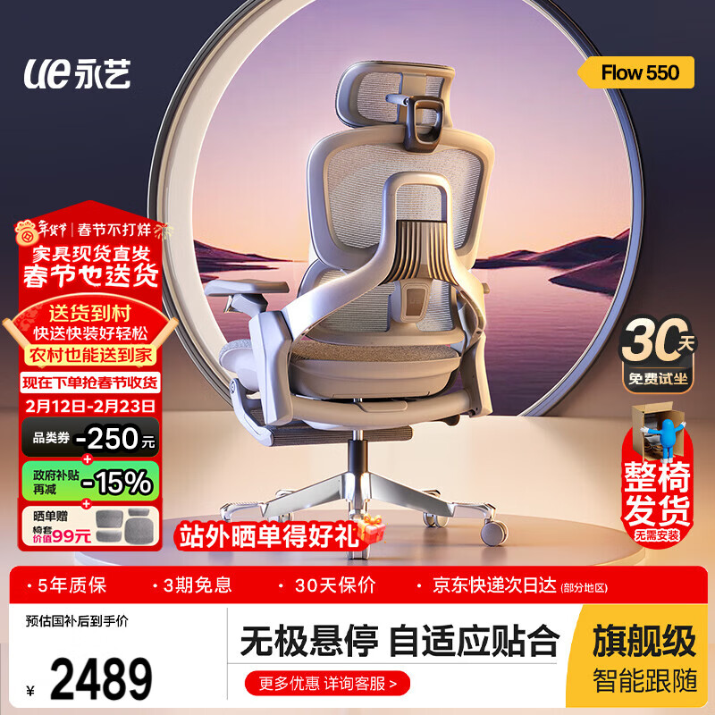 永艺Flow550人体工学椅电脑椅子护腰人工力学座椅久坐办公学习电竞椅