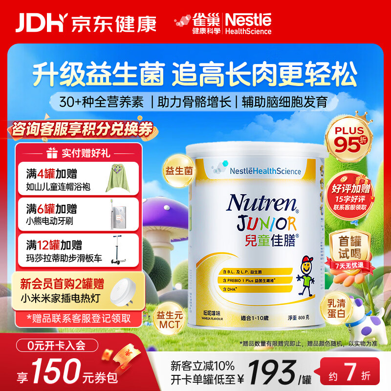 雀巢健康科学港版小佳膳儿童佳膳益生元乳清蛋白全营养配方奶粉1-10岁助力成长 800g*1罐 【约7天量】新效期
