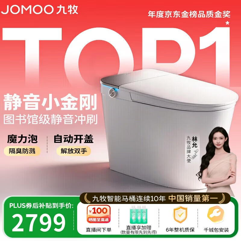 九牧(JOMOO)京东联合智能马桶静音小金刚S7抗菌防溅泡沫盾ZS770P-305免费送装