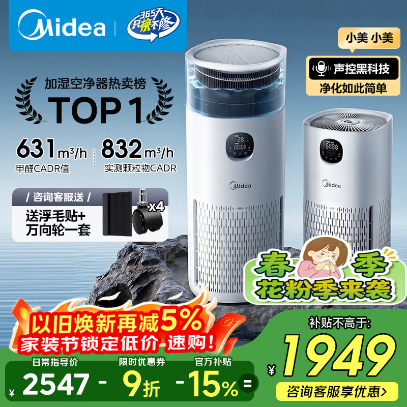 美的(Midea)【无雾加湿器】R8空气净化器加湿一体鼻炎家用甲醛数显除烟味异味过敏原花粉吸猫毛空气净化机