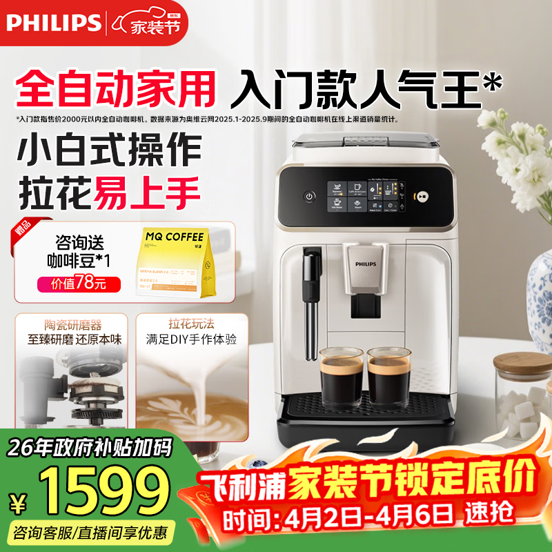 飞利浦(PHILIPS)黑珍珠咖啡机/意式 美式全自动家用咖啡机手动打奶泡绵密奶咖 研磨一体EP1221/69 送礼物