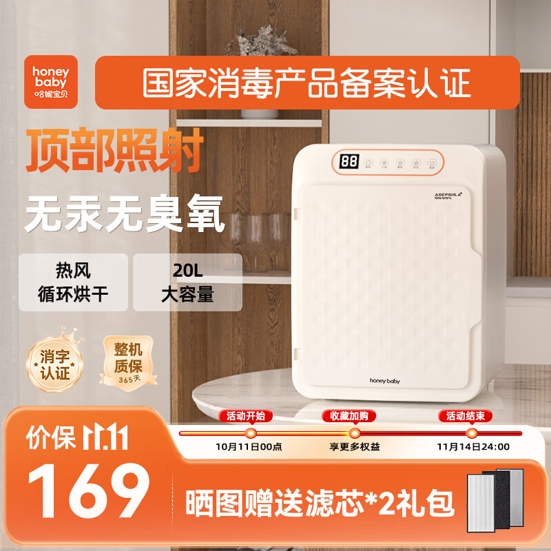 honey baby消毒柜婴儿奶瓶消毒器带烘干一体紫外线消毒柜内衣宝宝衣物家用 灭菌仓 20L 紫外线消毒 (顶部照射