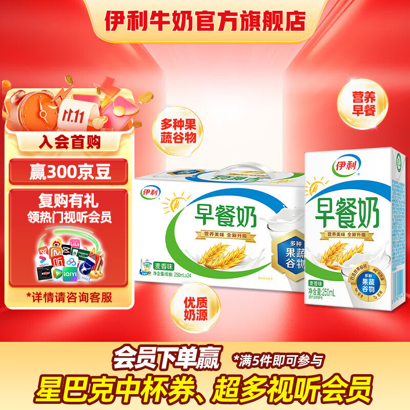 伊利 早餐奶麦香味250ml*24盒/箱 浓香麦片 礼盒装