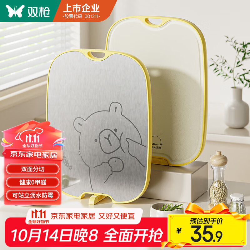 双枪切菜板 食品级抗菌防霉水果砧案板家用不锈钢双面辅食菜板小号