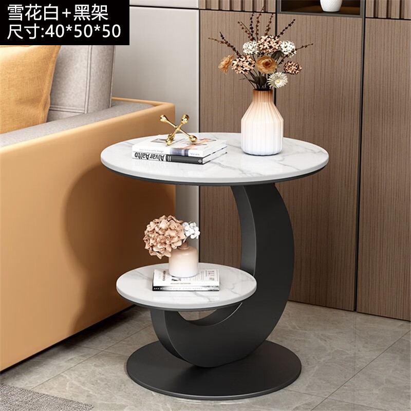 好脉双层移动茶几客厅网红岩板小户型沙发边几 Y-5050B 雪花白+黑架