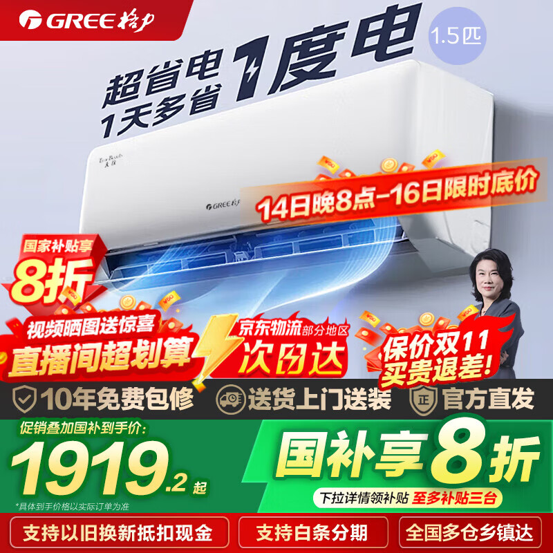 格力(GREE)空调天仪1.5匹/大1匹新一级能效变频壁挂式卧室省电空调挂机快速冷暖独立除湿以旧换新国家补贴20% 1.5匹 一级能效 丨天仪【适用15-22㎡】
