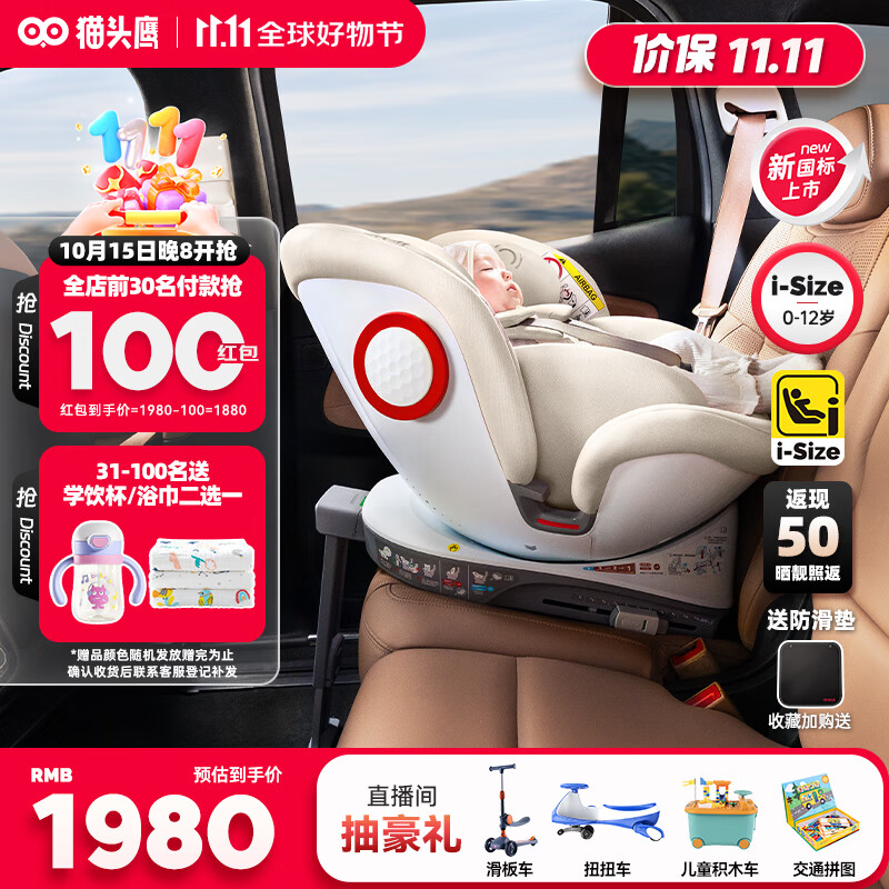 猫头鹰(SAVILE)儿童安全座椅卢娜2汽车用0-12岁婴儿宝宝i-Size认证 银白色