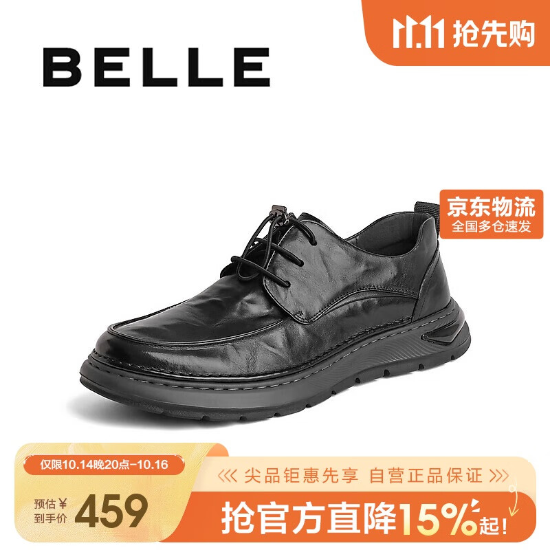 百丽酷黑商务皮鞋男秋季商场同款褶皱牛皮休闲皮鞋8CA01CM3 黑色 40