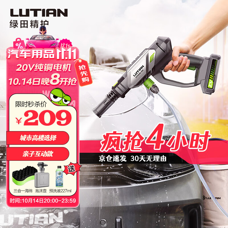 绿田(LUTIAN)20V无线洗车机200W家用锂电池清洗机高压充电水枪手持E2PRO
